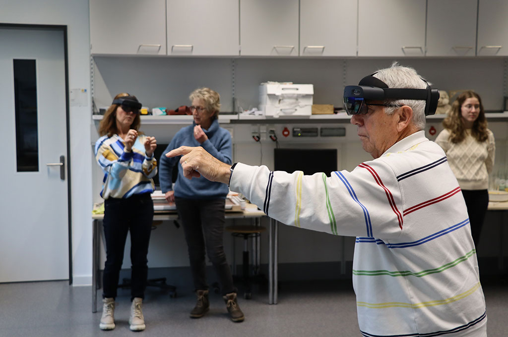 Hamm, 13. Januar 2026. Am Montag, 5. Januar 2026 haben sieben Senior*innen aus dem Hammer Stadtgebiet den Campus Hamm der Hochschule Hamm-Lippstadt besucht, um an einer Studie der wissenschaftlichen Mitarbeiterin Katharina Meyer und von Prof. Dr.-Ing. Petra Rolfes-Gehrmann, Studiengangsleiterin “Product Development and Business Studies“, teilzunehmen. In dieser geht es um den Einsatz von Augmented Reality (AR), einer Technologie, die digitale Informationen wie Bilder oder 3D-Modelle in Echtzeit in die reale Welt bringt, als spielerische Präventions- und Rehabilitationsanwendung für ältere Menschen.