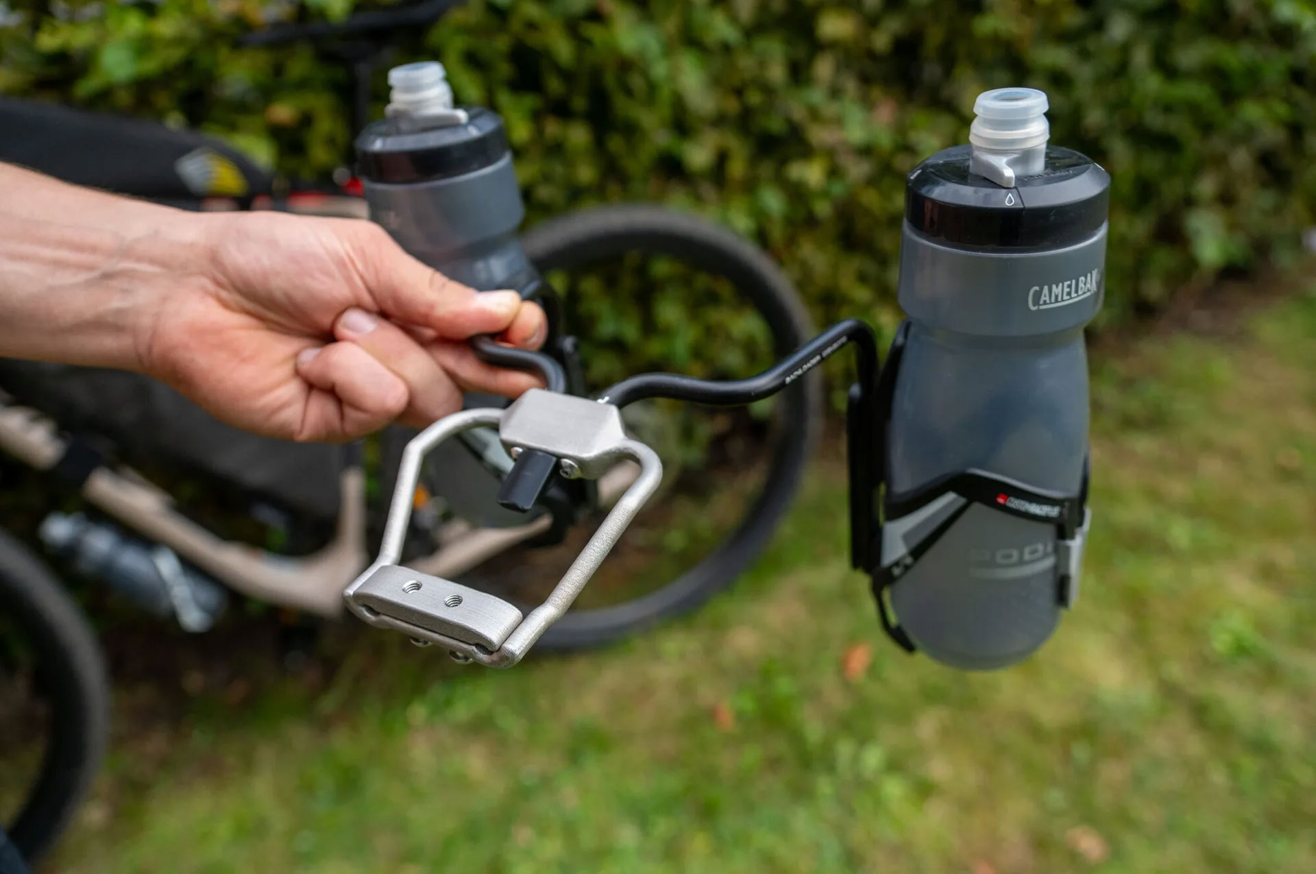Glindmeier freut sich über die unkomplizierte Lösung. „Die aus zwei Teilen bestehende Halterung wiegt 180 Gramm, ist also leicht und trotzdem steif genug, um die Flaschen und die Tasche zu halten.“ In der Regel fährt er Offroad-Strecken, am liebsten in Skandinavien oder Flussradwege zum Beispiel entlang der Weser, und das über mehrere Tage hinweg. Er benötigt unterwegs also Wechselklamotten, Zelt, Schlafsack und Isomatte, die er am Fahrrad verstauen muss. „Im Herbst steht die nächste Tour an – ich freue mich schon, die Halterung dann erstmals im Einsatz zu testen.“