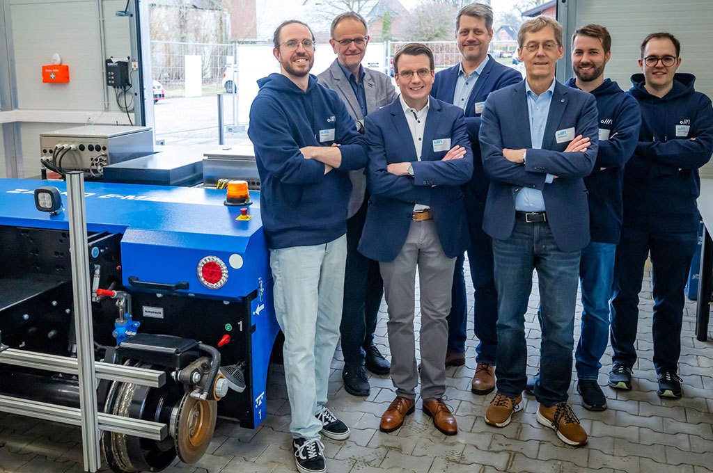 Ab sofort werden wissenschaftliche Mitarbeiter vom Institut für Systemdynamik und Mechatronik (ISyM) der HSBI sowie von der Technischen Hochschule Ostwestfalen-Lippe (TH OWL) häufig vor Ort sein, um an dem eigens für das Projekt angeschafften Rangierfahrzeug zu arbeiten. Zusammen mit Forschenden der Universität Bielefeld wollen sie dem Fahrzeug das automatisierte Ein- und Ausgleisen „beibringen“. Denn das wesentliche Ziel des Projektes ist, den Fahrwegwechsel zwischen Straße und Schiene – und umgekehrt – zu automatisieren, sodass dieser mit möglichst geringem Zeitverlust und ohne zusätzliche Infrastrukturmaßnahmen erfolgt. Danus Kilian Rawert, wissenschaftlicher Mitarbeiter an der HSBI, erklärt die Vision: „Das Fahrzeug soll sowohl auf der Straße als auch der Schiene automatisiert fahren, um in das bestehende Schienennetz eingebunden zu werden, ohne in die Infrastruktur investieren zu müssen. Das zeitintensive Umladen von Gütern oder Umsteigen von Personen entfällt, sodass der Komfort verbessert und Kosten und Reisezeiten minimiert werden.“
